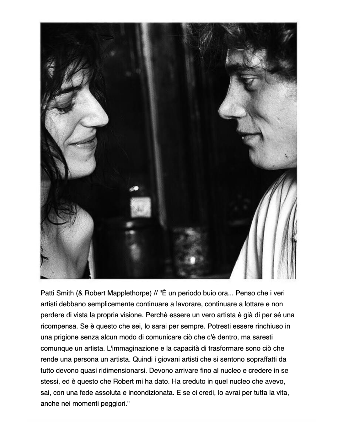 Patti Smith lo dice chiaramente: Robert ha creduto nel suo nucleo. Non nel talento visibile, non nel risultato, ma in qualcosa di più profondo, invisibile e ancora informe.